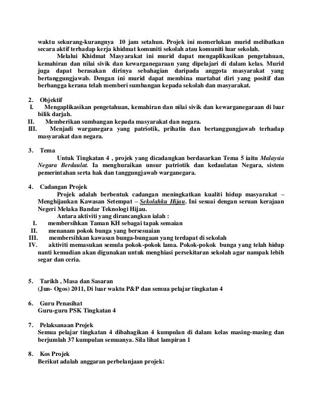 Kertas kerja khidmat masyarakat • 1. KERTAS KERJA KHIDMAT MASYARAKAT SMK TUN MUTAHIR 2011 PENGENALAN: Khidmat Masyarakat ialah komponen amali Pendidikan Sivik dan Kewarganegaraan yang memerlukan penglibatan murid secara kumpulan dalam aktiviti sekolah dan komuniti. Penglibatan ini ialah dalam bentuk projek atau kajian yang boleh membantu dan meningkatkan imej diri, sekolah dan komuniti. Melalui Khidmat Masyarakat ini, murid dapat mengaplikasikan pengetahuan kemahiran dan nilai sivik dan kewarganegaraan yang dipelajari dalam bilik darjah.